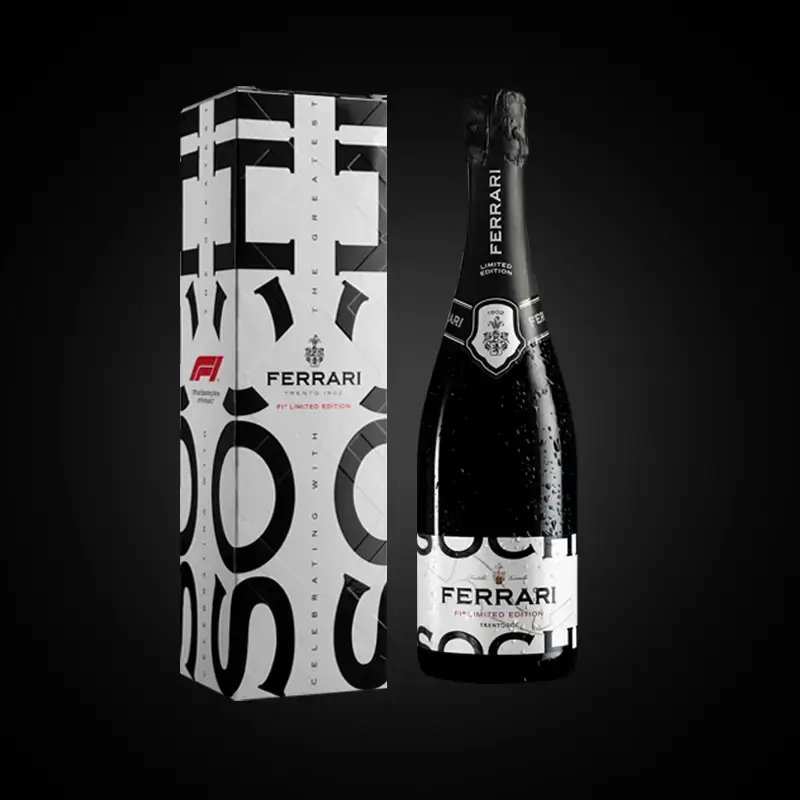 Deze fles is een replica van de fles die op het podium word gebruikt, met aan één kant de naam ‘Ferrari’ groot geschreven, het symbool van de winnaar van de Grand Prix™ en het officiële logo van de Formule 1®. Het is geproduceerd in een beperkte oplage van wereldwijd 3.500 flessen en alleen in de drieliterflessen – typisch voor dergelijke vieringen – bekend als Jeroboam, ter ere van de oudtestamentische koning met die naam. Het wordt aangeboden in een speciale cilindrische geschenkdoos, met een speciaal ontwerp.