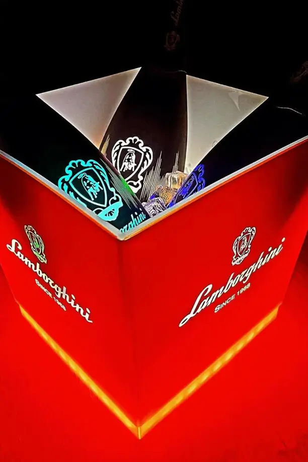 Met ruimte voor vier flessen wijn of champagne biedt deze koeler niet alleen stijl, maar ook functionaliteit. Perfect voor het presenteren van je favoriete Lamborghini Spumante, prosecco of rosé tijdens speciale gelegenheden.