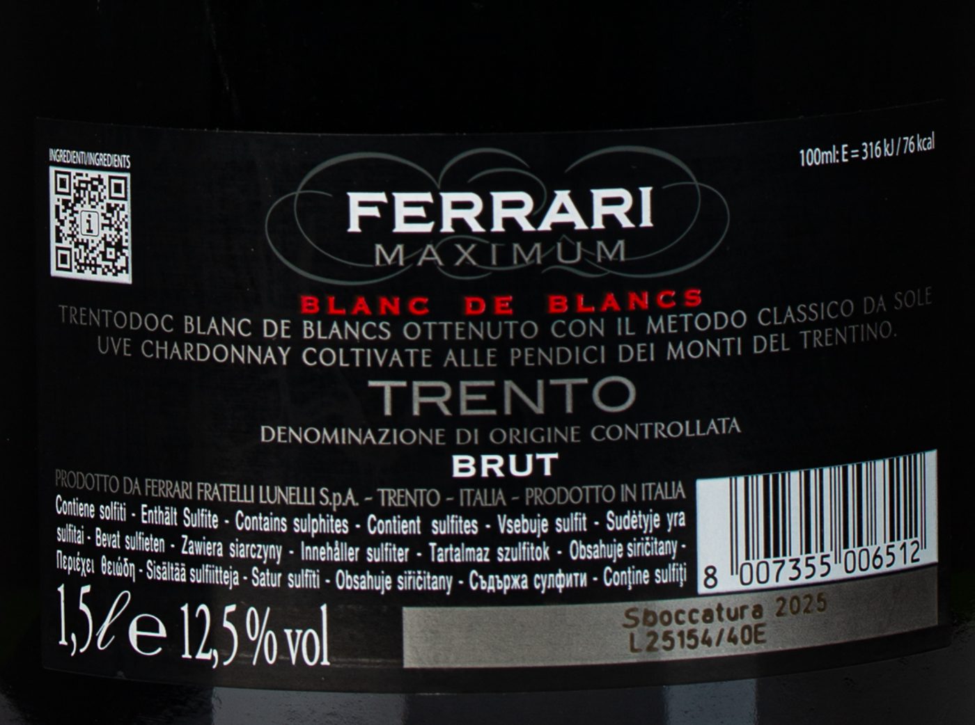 De Maximum is de eerste wijn geproduceerd door Giulio Ferrari aan het begin van de 20e eeuw en is nog steeds een Blanc de Blancs van onmiskenbare stijl, die u overtuigt met zijn frisheid en fruitige geur.