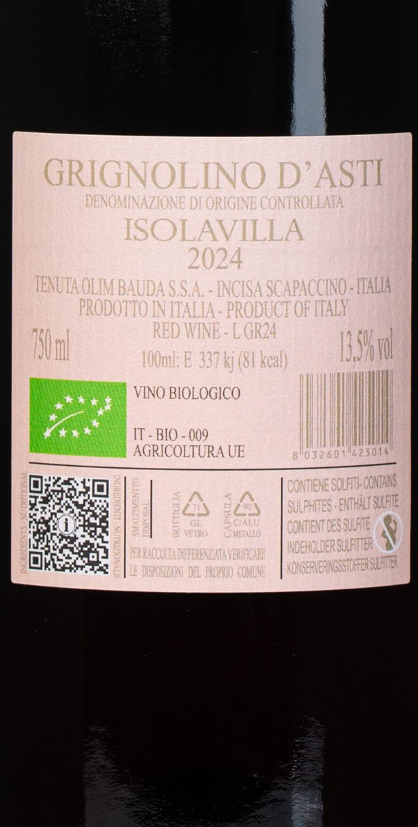 Grignolino d’Asti DOC Isolavilla – Olim Bauda – Piemonte
